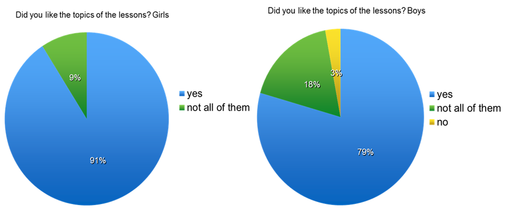 Бытует мнение, что в однополых классах девочки показывают более высокие результаты в изучении точных наук, в то время как мальчики совершенствуются в изучении гуманитарных наук. Также, хочется отметить, что при подготовке к смене меняется и характер работы преподавателей, как при работе с планированием, так и при живом контакте с детьми. Проводятся практические семинары для преподавателей, где происходит их подготовка к работе с однополыми группами, обучение подходам и форматам работы на занятиях. Основываясь на результатах исследования, можно сделать вывод о важности усовершенствования гендерного подхода в обучении. Несмотря на то, что гендерное обучение, не так широко распространено в России, Хаглар не стоит на месте, и уже этой осенью, мы увидим результаты гендерного разделения. Старших ребят ждут 4 занятия по 135 минут, каждое из которых будет посвящено определенной теме, соответствующей интересам мальчиков и девочек.