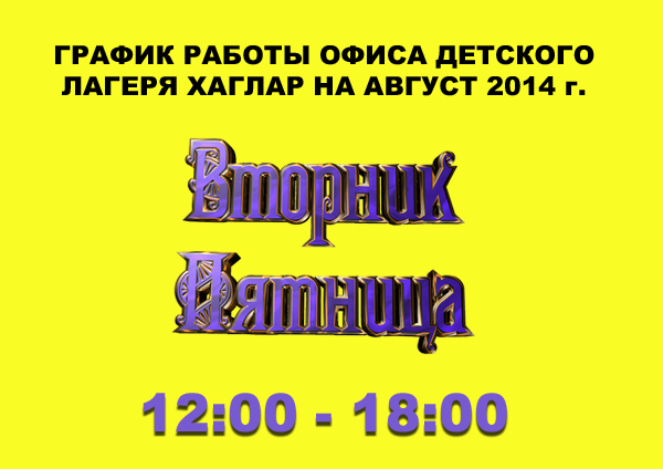 В августе 2014 г. мы будем рады видеть вас и ответить на ваши телефонные звонки по вторникам и пятницам с 12:00 до 18:00