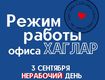 📌 Режим работы офиса Хаглар: 3 сентября.